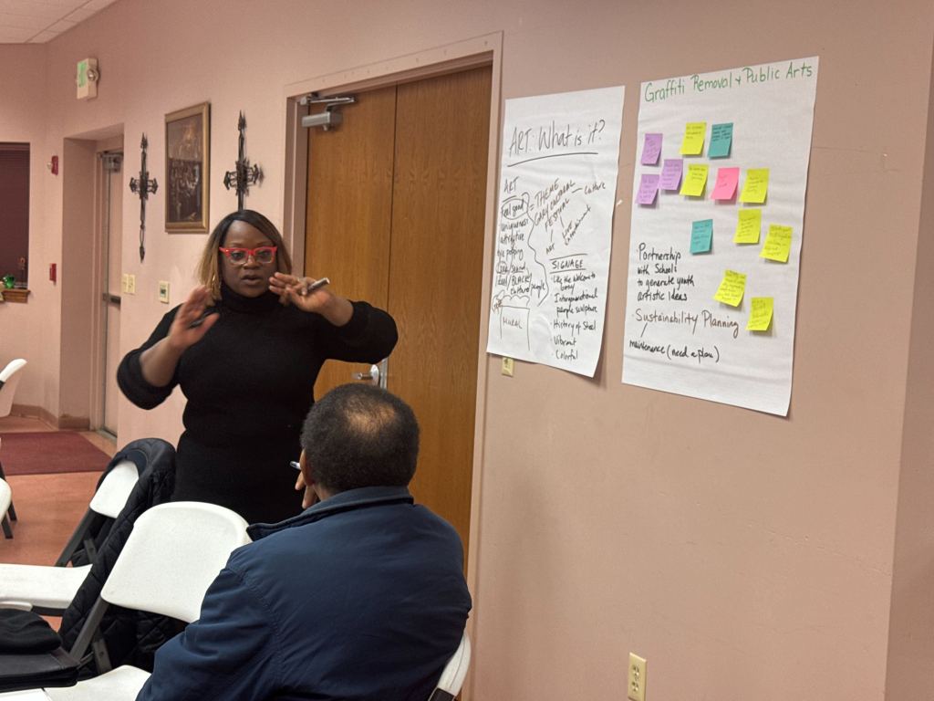Over the past week, city and program officials hosted the first round of informative workshop sessions with residents in three selected neighborhoods. While each session was tailored to the community’s specific needs, all included interactive brainstorming exercises. Residents used sticky notes to outline their ideas, which were then categorized into key focus areas. Participants then gathered at their chosen tables to collaborate on potential projects, including community clean-ups, public art installations, park and green space enhancements, and graffiti removal.